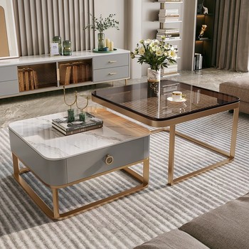 Hiện đại vuông bàn trà tiên tiến cảm giác nghệ thuật kim loại bảng đá đơn giản Thiết kế sáng tạo cho căn hộ nhỏ ánh sáng sang trọng cho